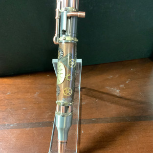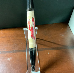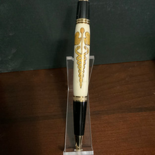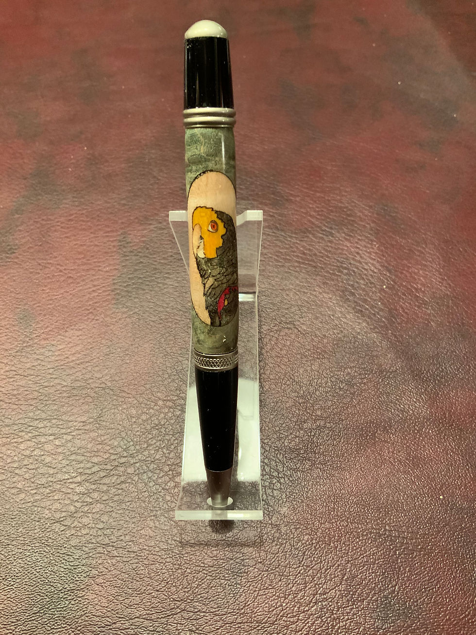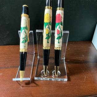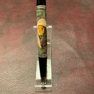 Wood inlays that feature animals, sports, occupations and images. Each one is a laser cut image in-layed to a wood body. The detail in the inlays is quite intricate. The pens can come in twist or button click style.